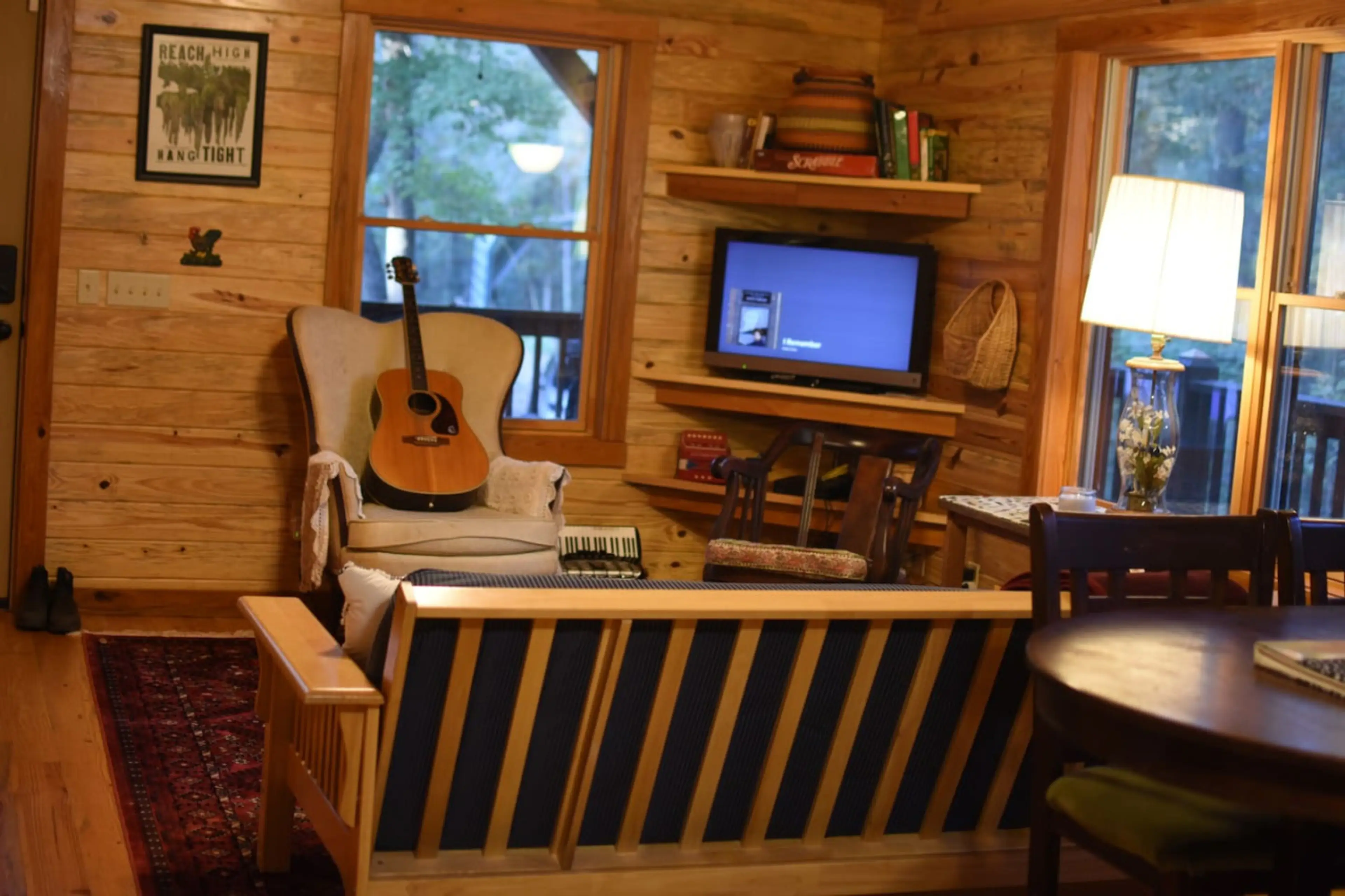 Kick back at our forested two-cabins-in-one property. The Folkhouse is located in a river community at the confluence of two rivers, situated across a dirt road from the beautiful Santa Fe River and within a mile walk from the crystal clear Ichetucknee, on a full acre adjacent to 100 acres of conser...